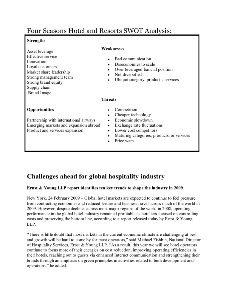 | Read Four Seasons Hotel And Resorts Swot Analysis Pdf Recession Risk |